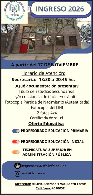 Todas las novedades de ingreso en esta sección. A partir del 17 de noviembre te esperamos para tu inscripción !!!